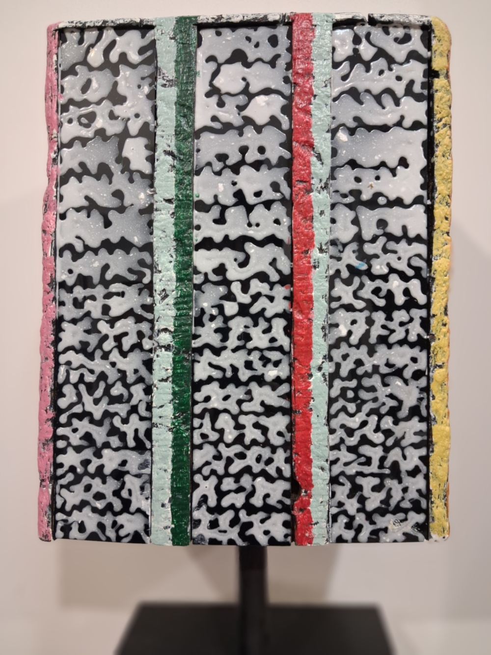 Querstrebe aus Eiche – Multicolor – Leichtmetalllegierung in Luftfahrtqualität – schwarze Altuglas-Platte mit Beschriftung aus weißem Mischharz