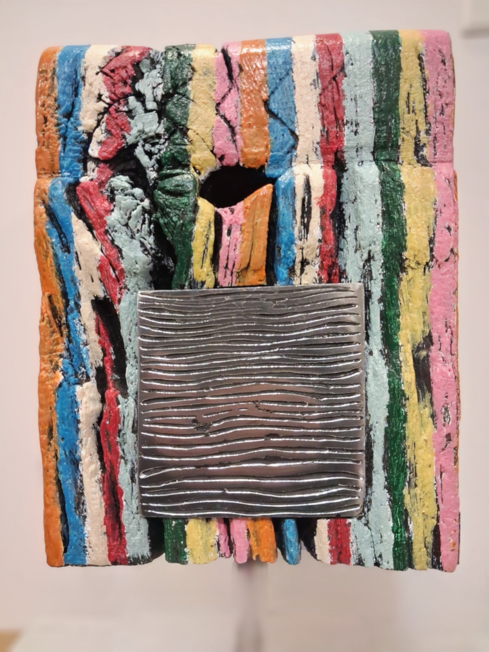 Querstrebe aus Eiche – Multicolor – Leichtmetalllegierung in Luftfahrtqualität – schwarze Altuglas-Platte mit Beschriftung aus weißem Mischharz