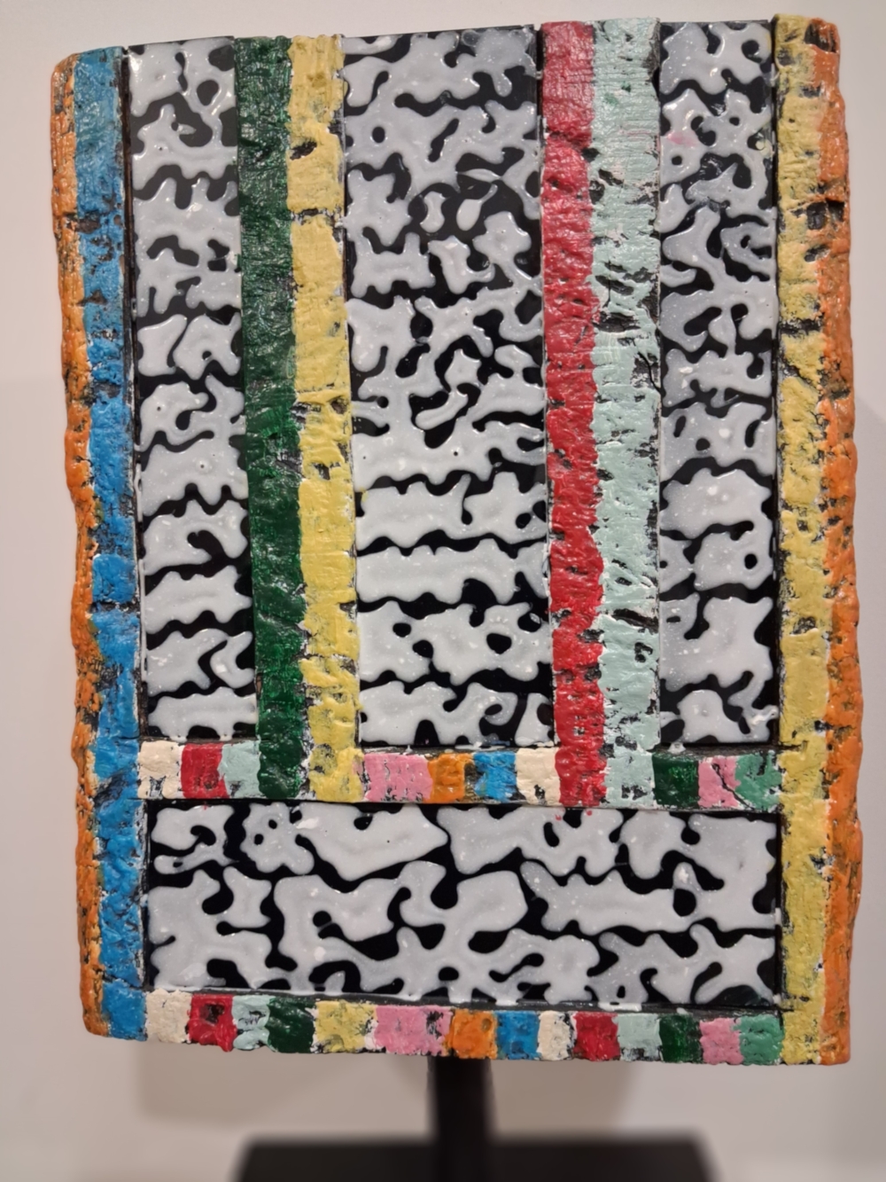 Querstrebe aus Eiche – Multicolor – Leichtmetalllegierung in Luftfahrtqualität – schwarze Altuglas-Platte mit Beschriftung aus weißem Mischharz