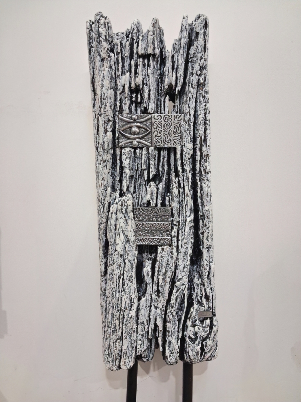 Querstrebe aus Eiche – Einfarbig – Leichtmetalllegierung in Luftfahrtqualität – schwarze Altuglas-Platte mit Beschriftung aus weißem Mischharz