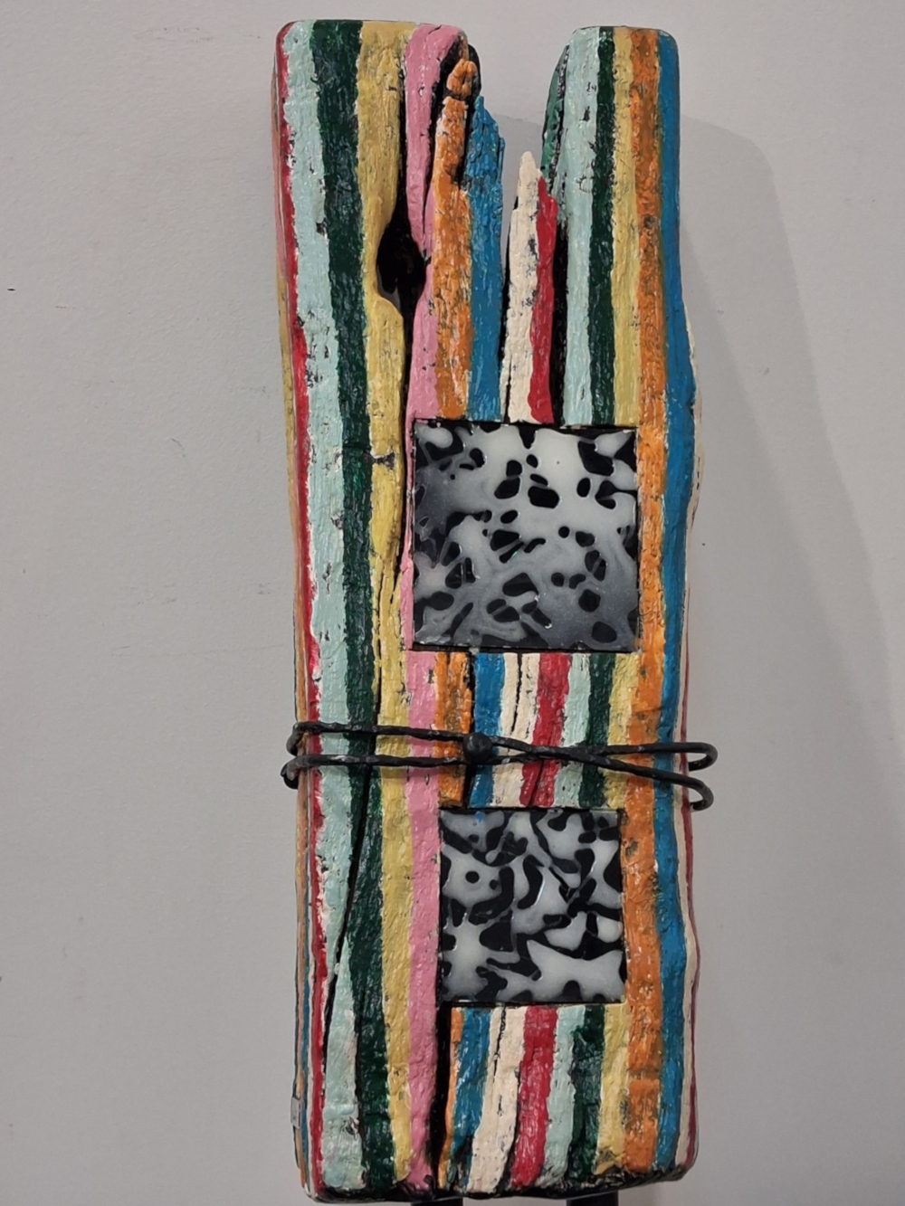 Querstrebe aus Eiche – Mehrfarbig – Leichtmetalllegierung in Luftfahrtqualität – schwarze Altuglas-Platte mit Beschriftung aus weißem Mischharz